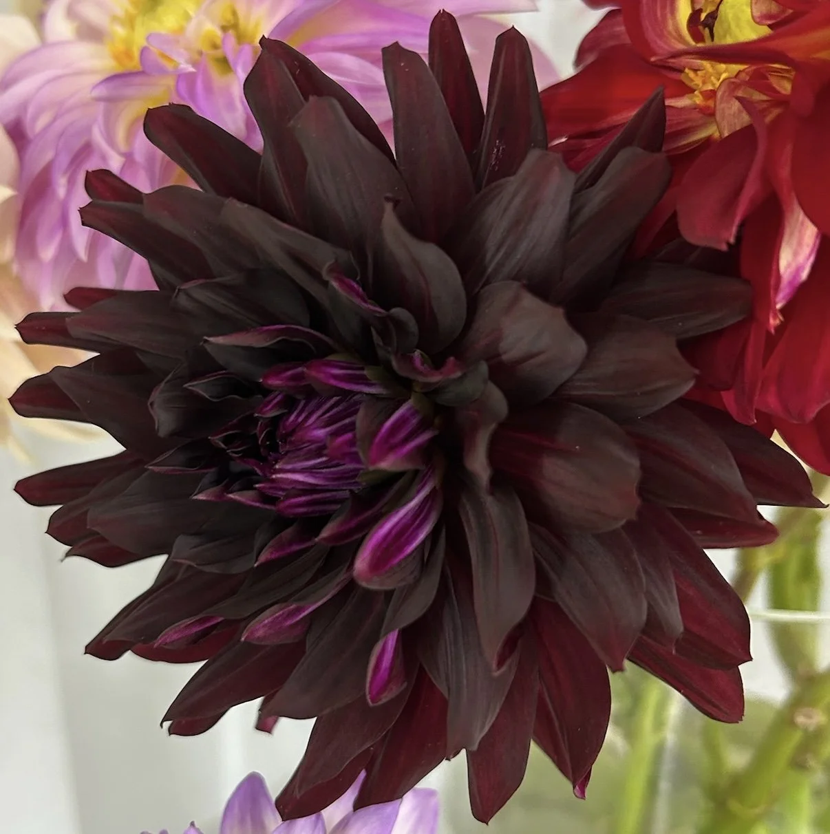We have tried our very best to capture our own photos of the varieties that we grow. Unfortunately, not all were able to be captured during the hustle and bustle of our growing season. We are committed to using our own photos of flowers grown on our farm so you have full confidence in what you are purchasing. In future seasons we will continue to give our best effort in providing you with the most beautiful photos we can! Thank you for visiting us and considering Black Dog Farms Dahlias for your tuber needs!